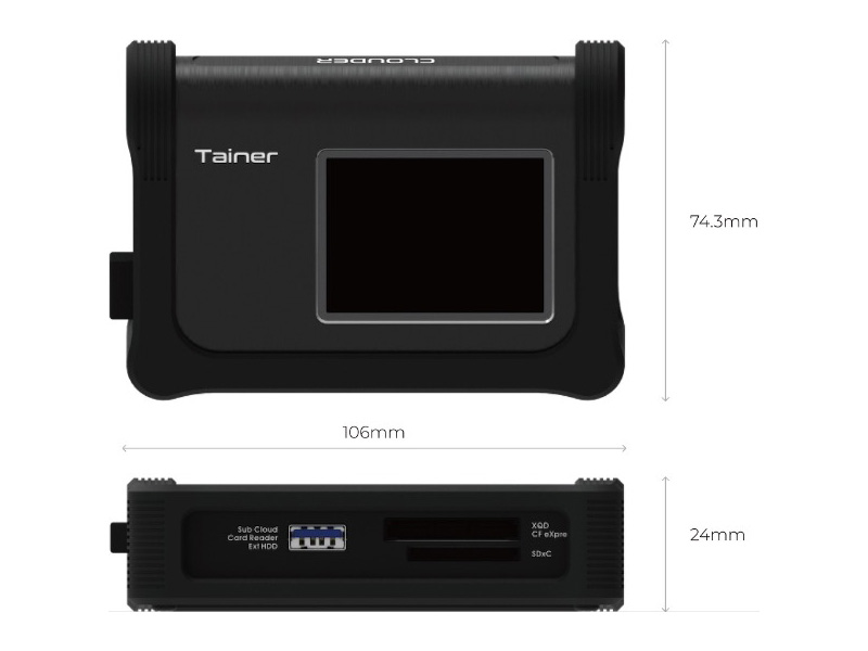 With a weight of 196g and dimensions of 106 x 74.3 x 24mm, the ClouZen TAINER fits seamlessly into camera bags, backpacks, and even pockets. You won't need to carry a separate laptop, external hard drive, XQD reader, SD card reader, or cables. With a size smaller than a typical mobile phone, the TAINER makes outdoor backups effortlessly simple.